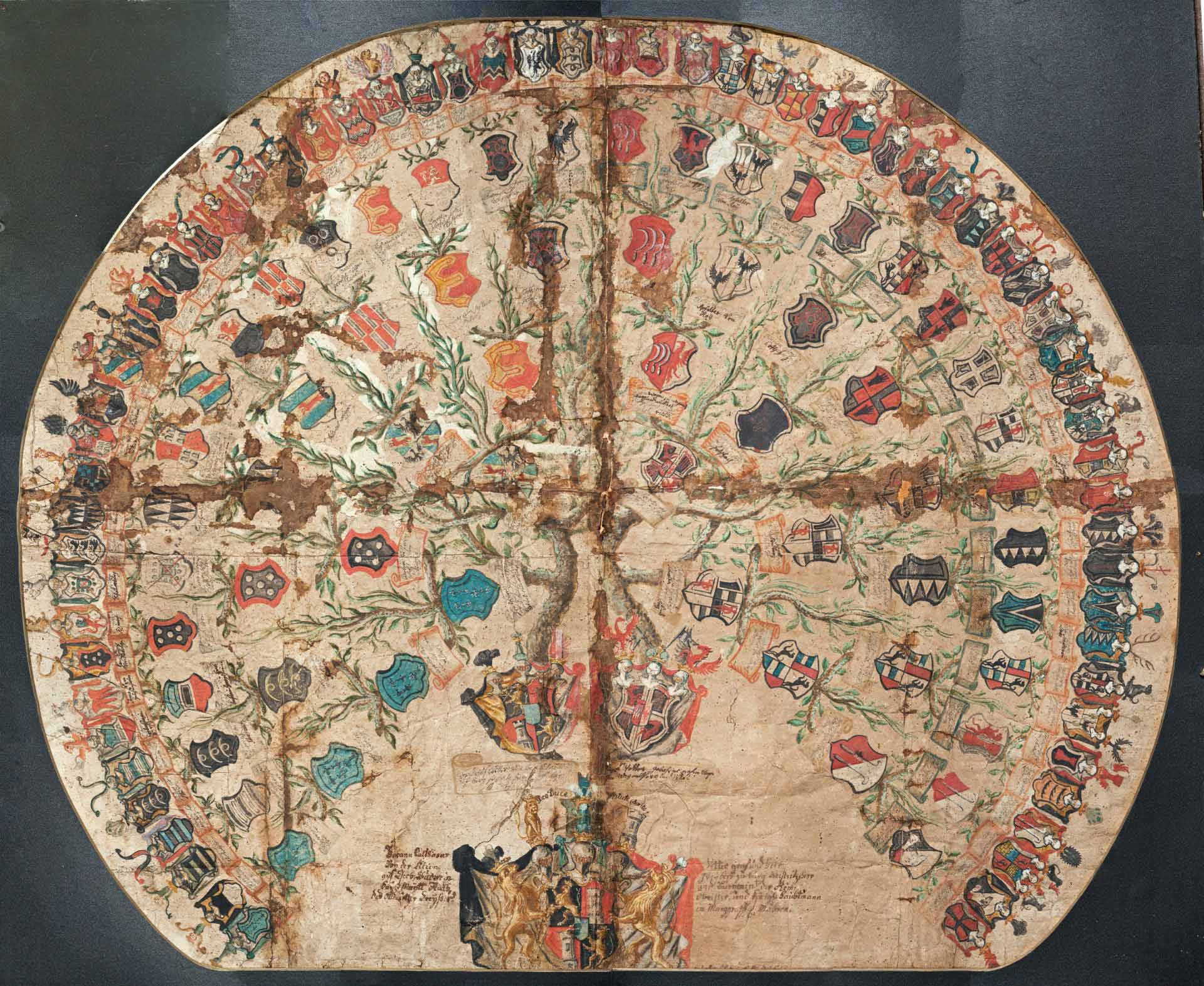 Na podzim nás oslovil pan kastelán ze zámku v Kuníne s požadavkem na výrobu faksimile rodokmenu rodiny Vetterů z Lilie. Rodokmen posloužil jako dar k životnímu jubileu hraběte Karla Vettera z Lilie od paní hraběnky. Rod Vetterů z Lilie žil na zámku v Nové Horce, odkud pochází i originál rodokmenu z počátku 18. století. Nyní je originál uložen na zámku ve Vizovicích, kde jsme ho digitalizovali.