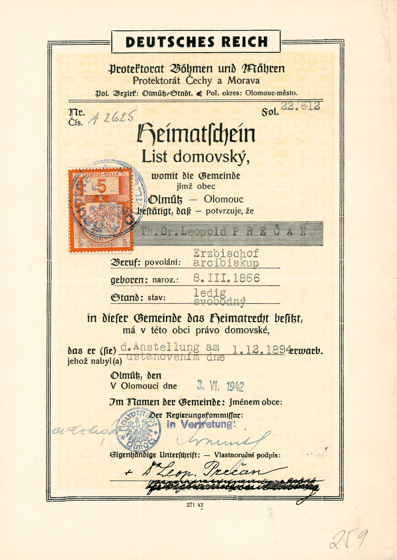 Arcibiskup Leopold Prečan, Německá říše, Protektorát Čechy a Morava, strana 2