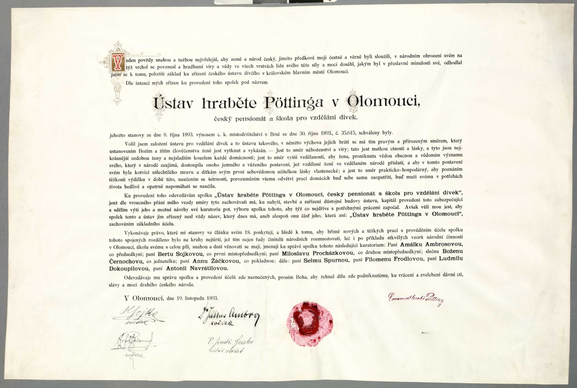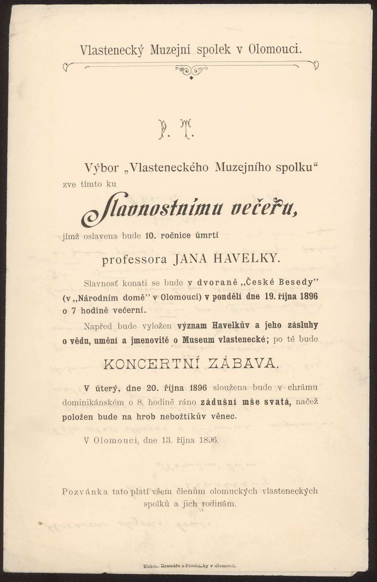 Dobročinný komitét dam v Olomouci za lask. spoluúčasti domácího orchestru "Žerotína" ve prospěch chudých dítek českých škol. Rok 1904.